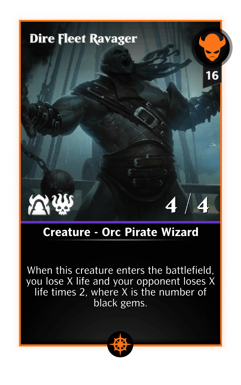 When this creature enters the battlefield, you lose X life and your opponent loses X life times 2, where X is the number of black gems.