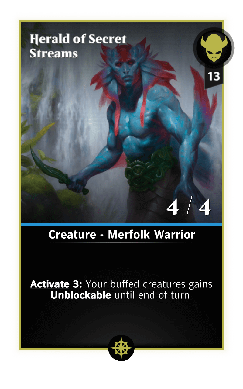 Activate 3: Your buffed creatures gains Unblockable until end of turn.