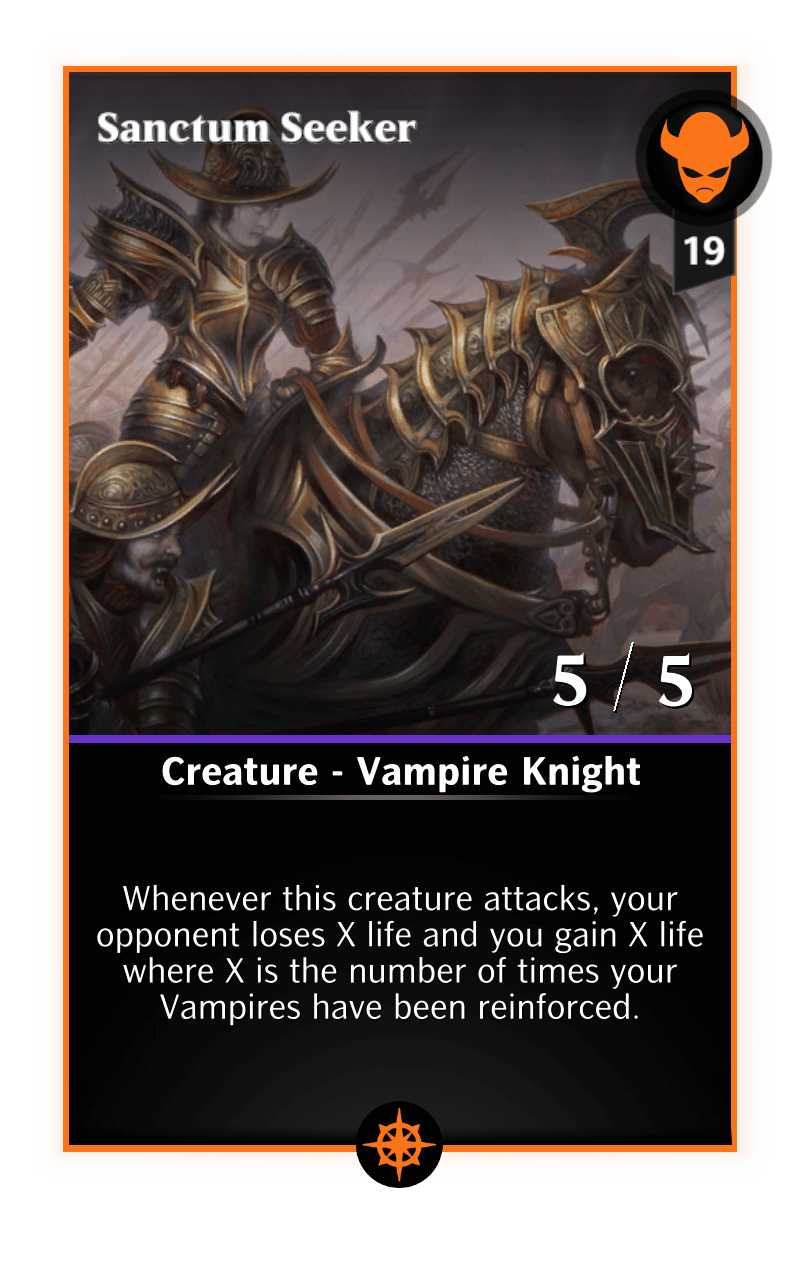 Whenever this creature attacks, your opponent loses X life and you gain X life, where X is the number of times your Vampires have been reinforced.