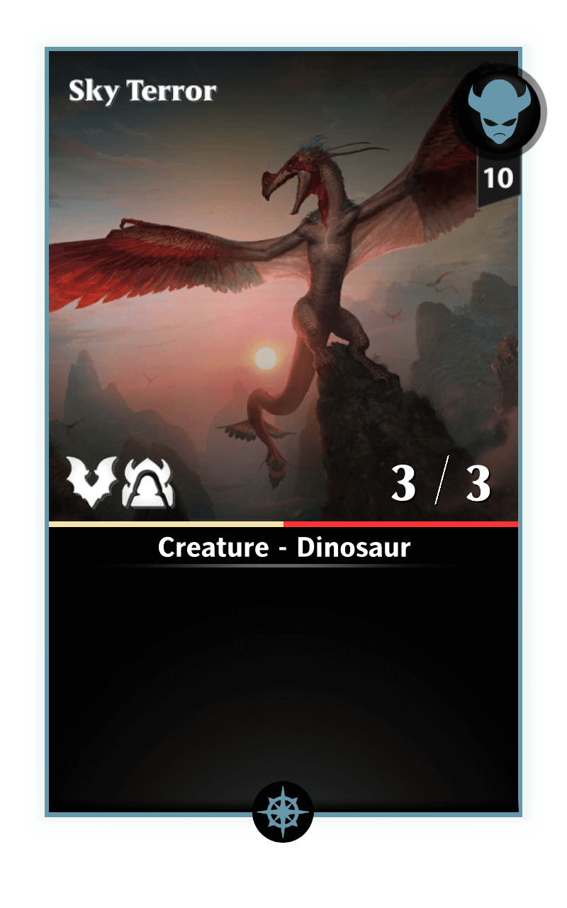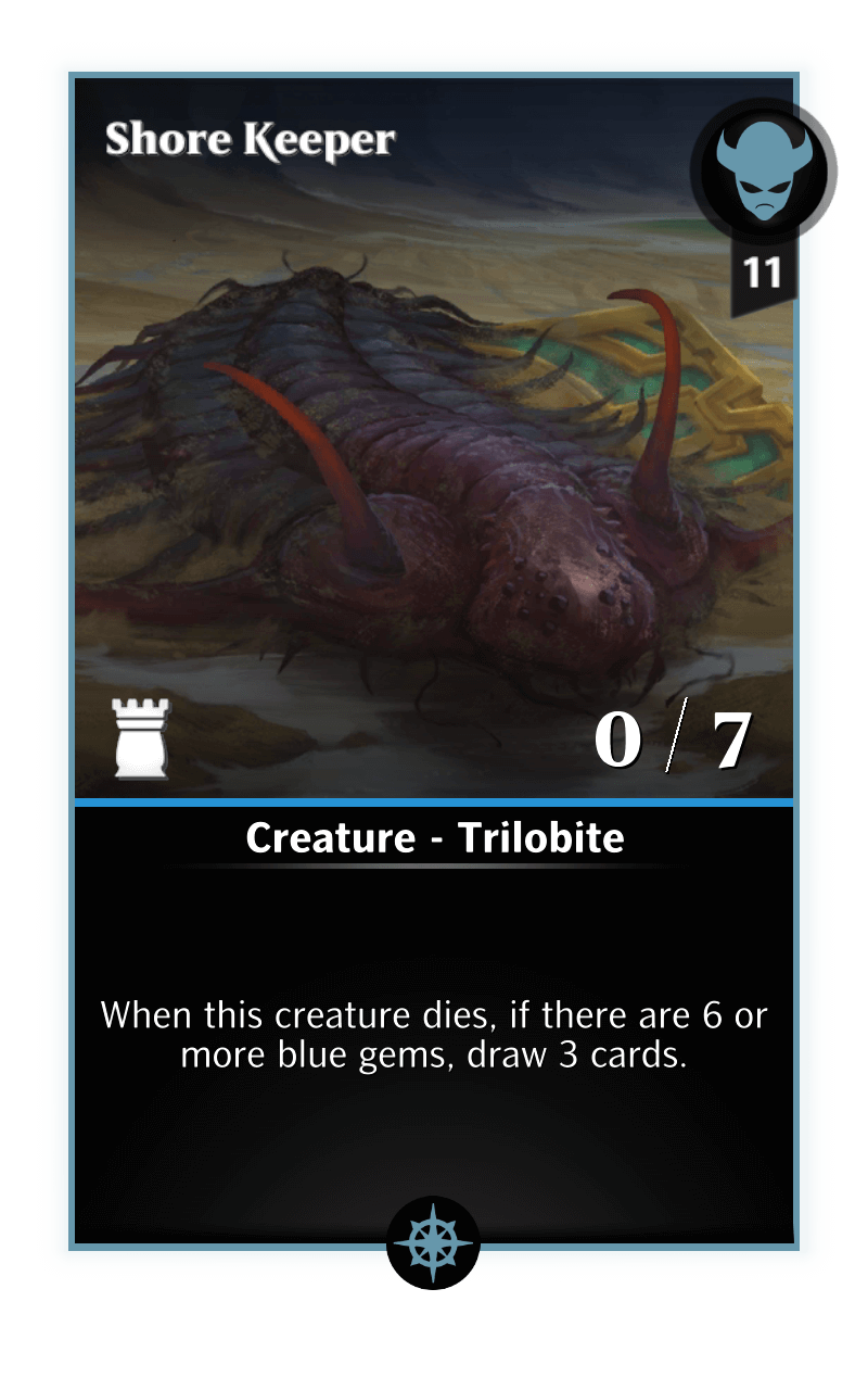 When this creature dies, if there are 6 or more blue gems, draw 3 cards.