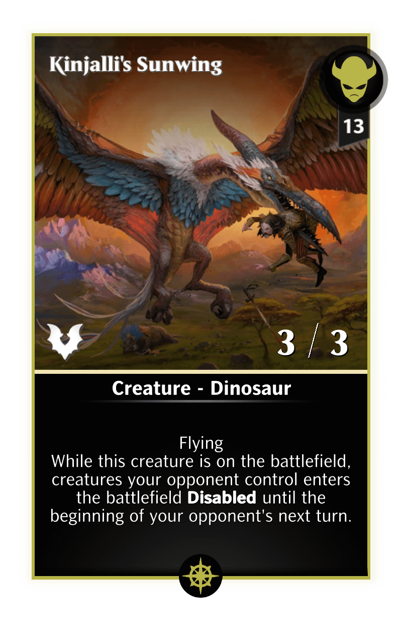 FlyingWhile this creature is on the battlefield, creatures your opponent control enters the battlefield Disabled until the beginning of your opponent’s next turn.