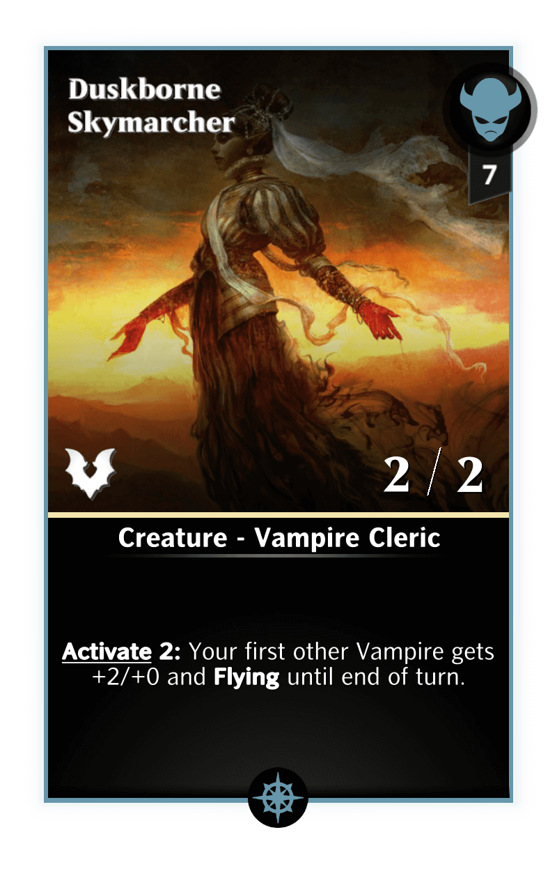 FlyingActivate 2: Your first other Vampire gets +2/+0 and Flying until end of turn.