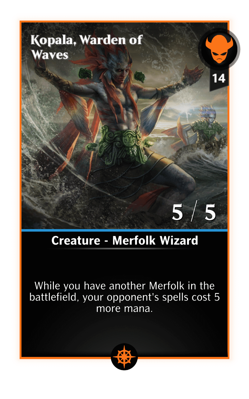 While you have another Merfolk in the battlefield, your opponent’s spells cost 5 more mana.