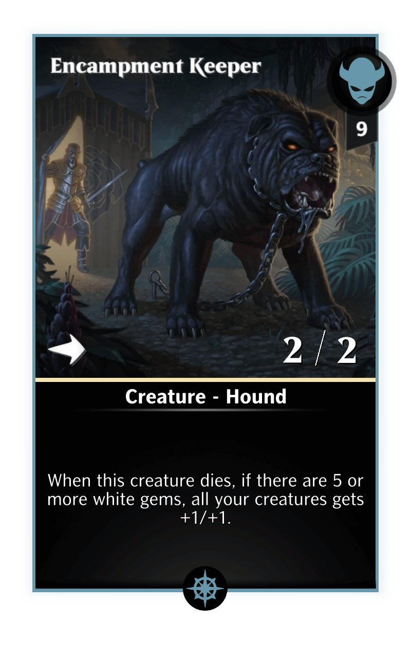 First StrikeWhen this creature dies, if there are 5 or more white gems, all your creatures gets +1/+1.