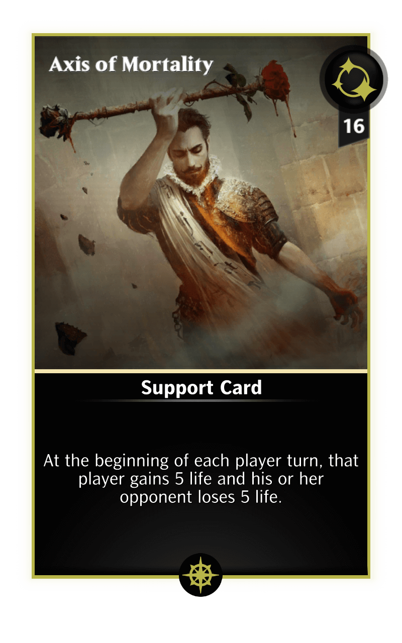 At the beginning of each player turn, that player gains 5 life and his or her opponent loses 5 life.