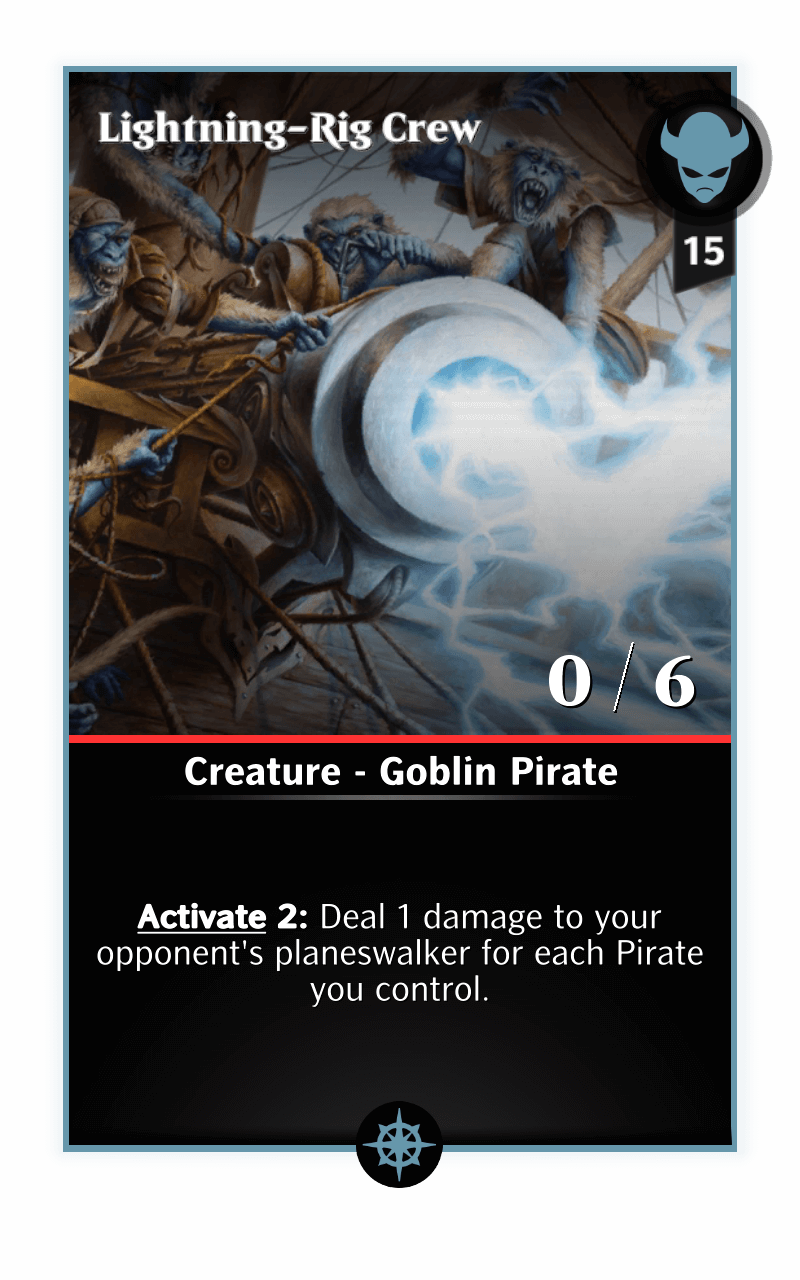 Activate 2: Deal 1 damage to your opponent’s planeswalker for each Pirate you control.