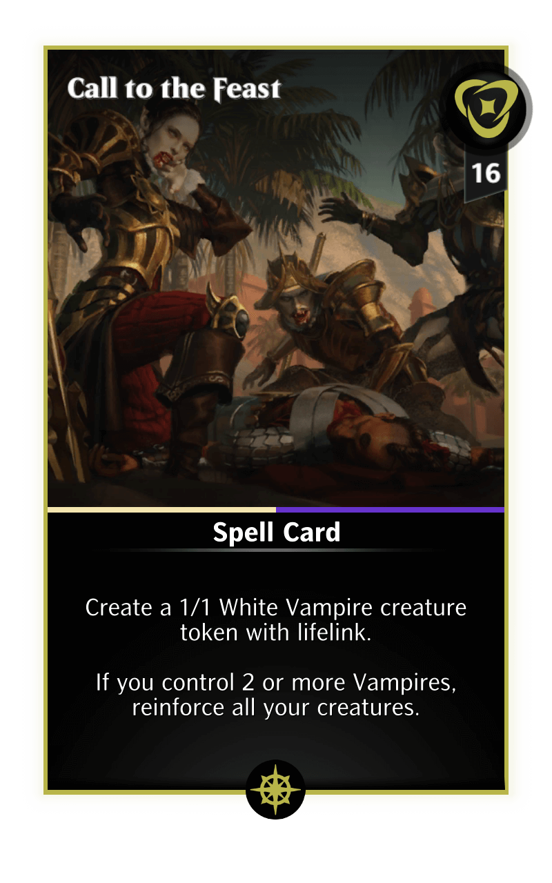Create a 1/1 White Vampire creature token with lifelink. If you control two or more Vampires, reinforce all your creatures.