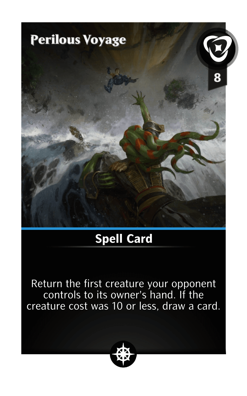 Return the first creature your opponent controls to its owner’s hand. If the creature cost was 10 or less, draw a card.