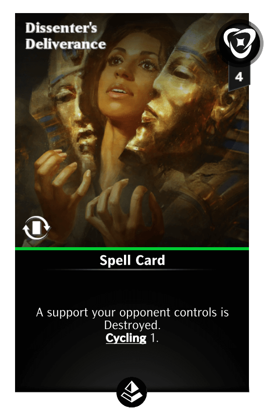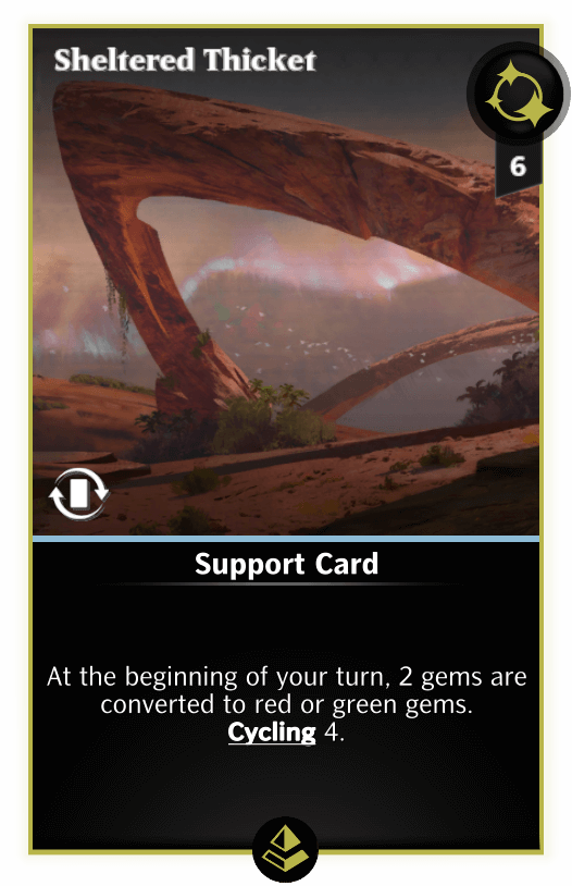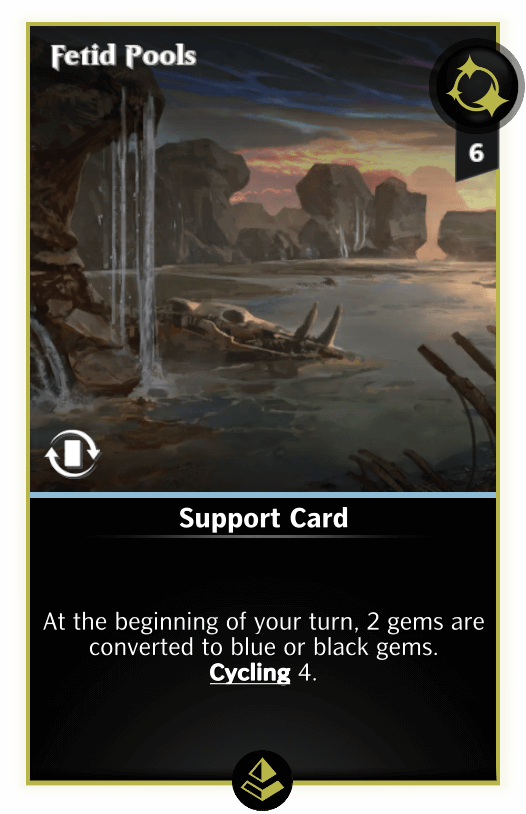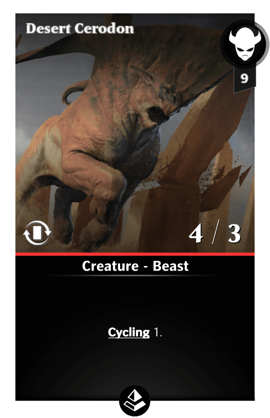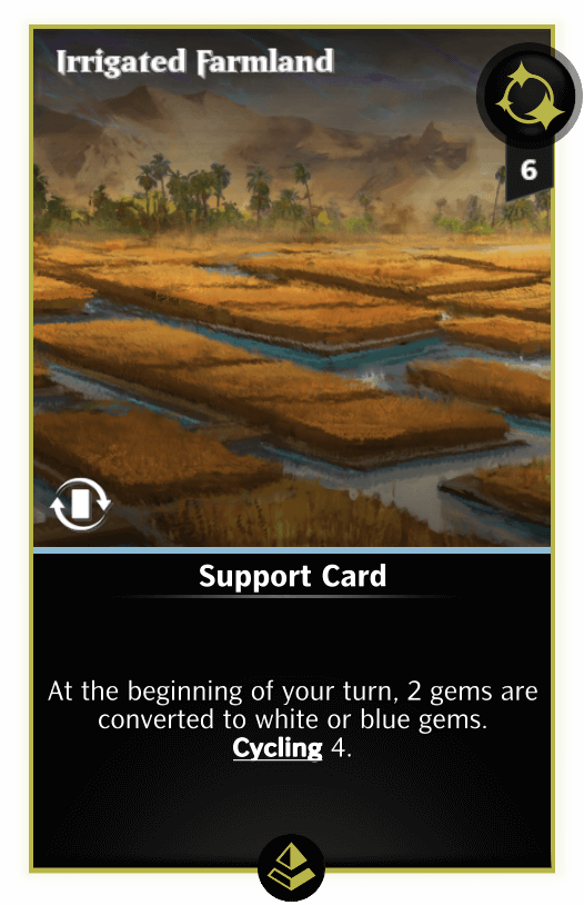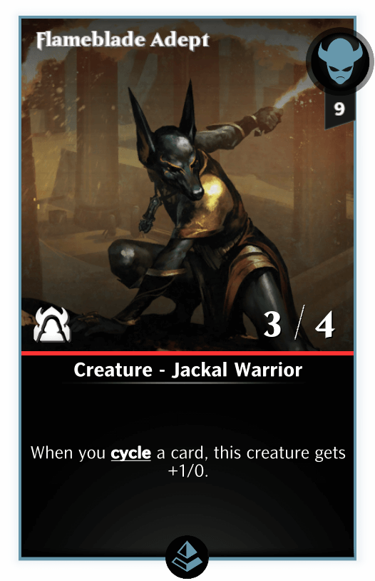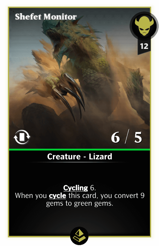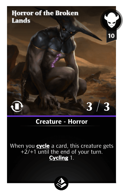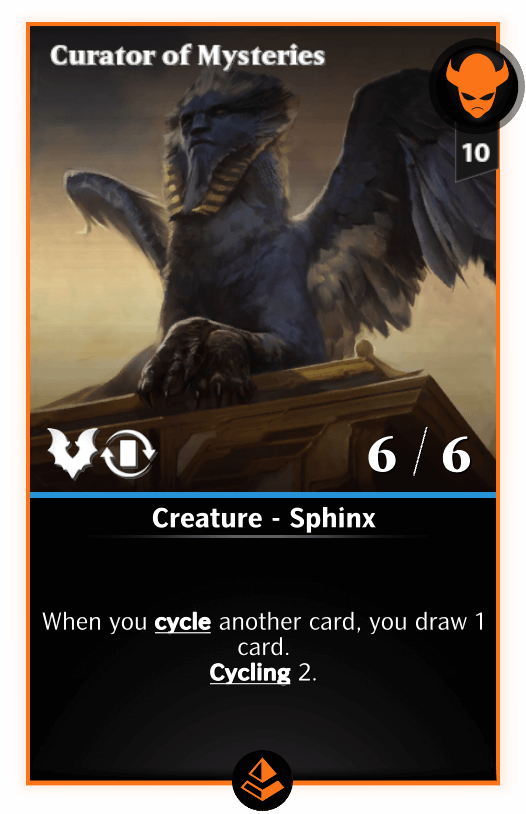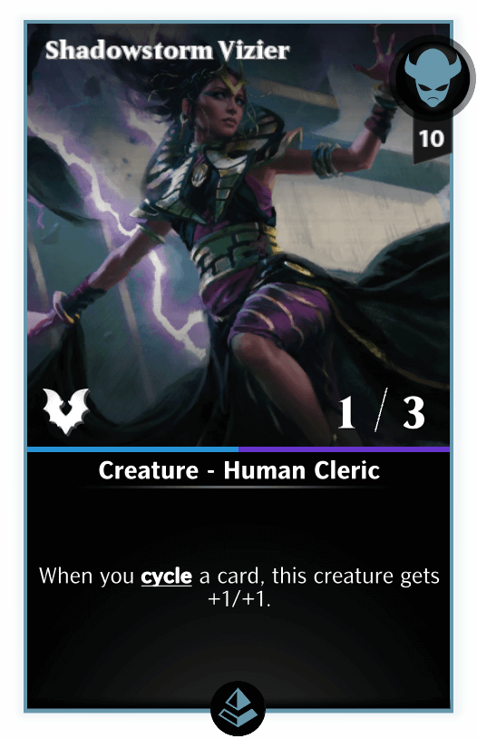 While this support is on the board, when you draw a card with Cycling, that card gains 3 mana.