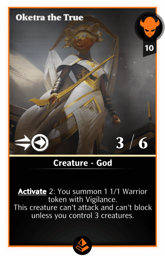 Activate 2: You summon 1 1/1 Warrior token with Vigilance.