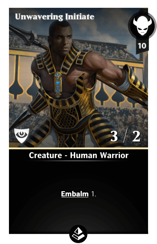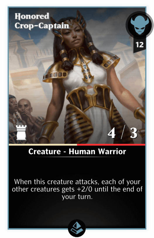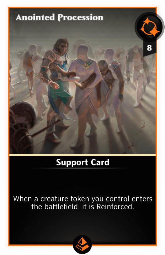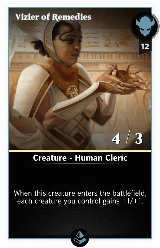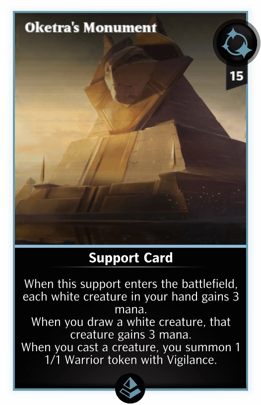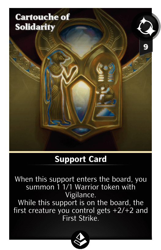 When this support enters the board, you summon 1 1/1 Warrior token with Vigilance.