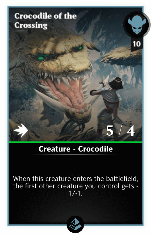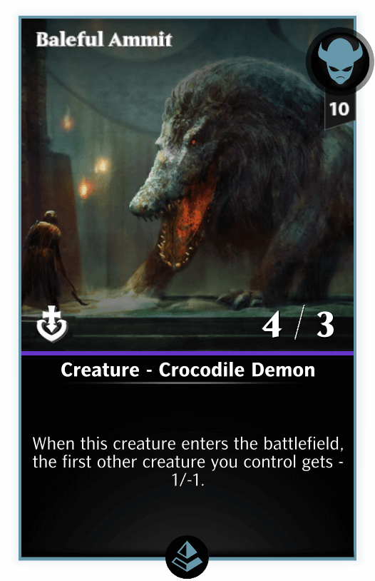 When this creature enters the battlefield, the first other creature you control gets -1/-1.