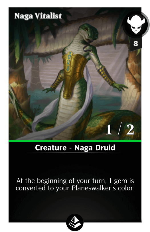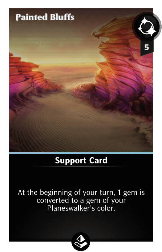 At the beginning of your turn, 1 gem is converted to a gem of your Planeswalker’s color.