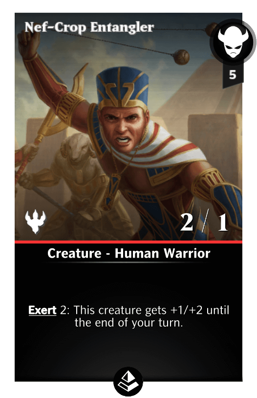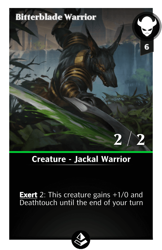 Exert 2: This creature gains +1/0 and Deathtouch until the end of your turn