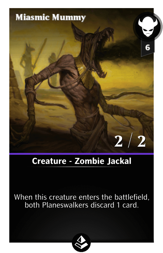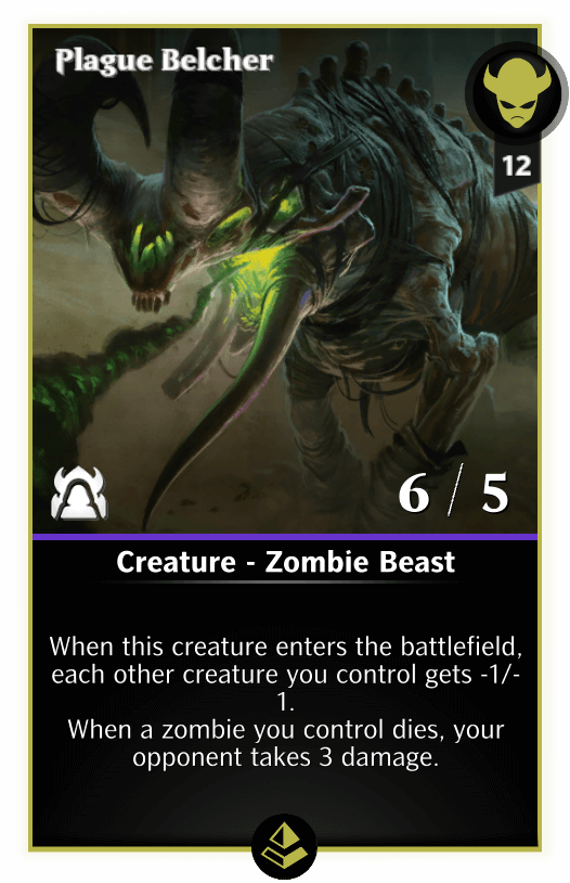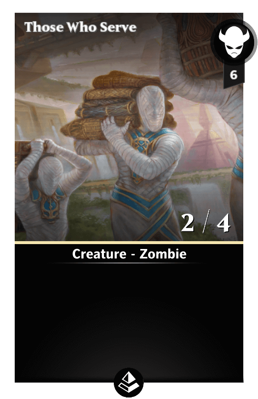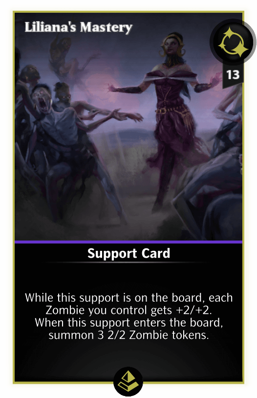 When this support enters the board, summon 3 2/2 Zombie tokens.