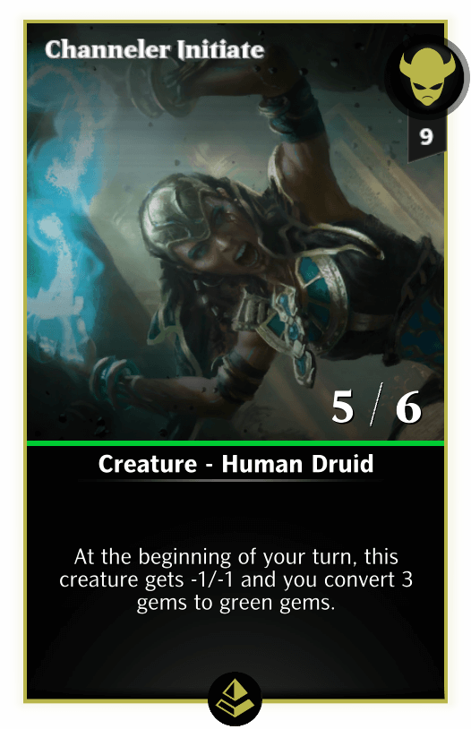 At the beginning of your turn, this creature gets -1/-1 and you convert 3 gems to green gems.