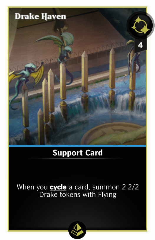 When you cycle a card, summon 2 2/2 Drake token with Flying