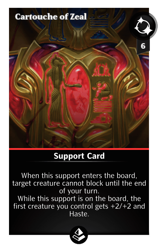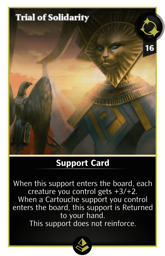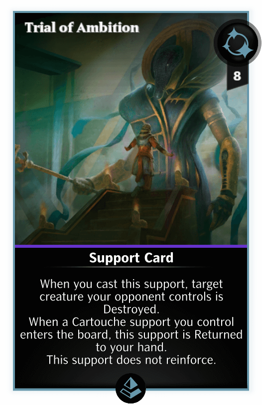 When a Cartouche support enters the board, this support is Returned to your hand.