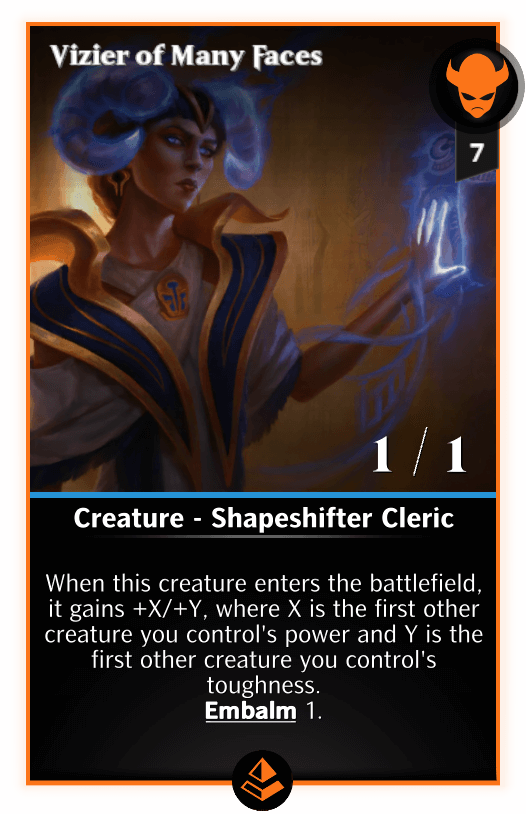 When this creature enters the battlefield, it gains +X/+Y, where X is the first other creature you control’s power and Y is the first other creature you control’s toughness.