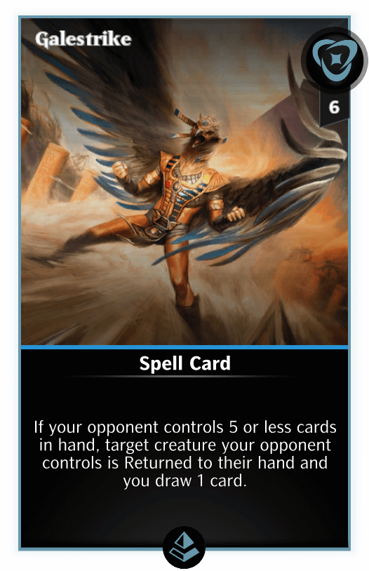 If your opponent controls 5 or less cards in hand, target creature your opponent controls is Returned to their hand and you draw 1 card.