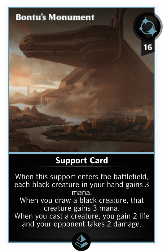 When this support enters the battlefield, each black creature in your hand gains 3 mana.