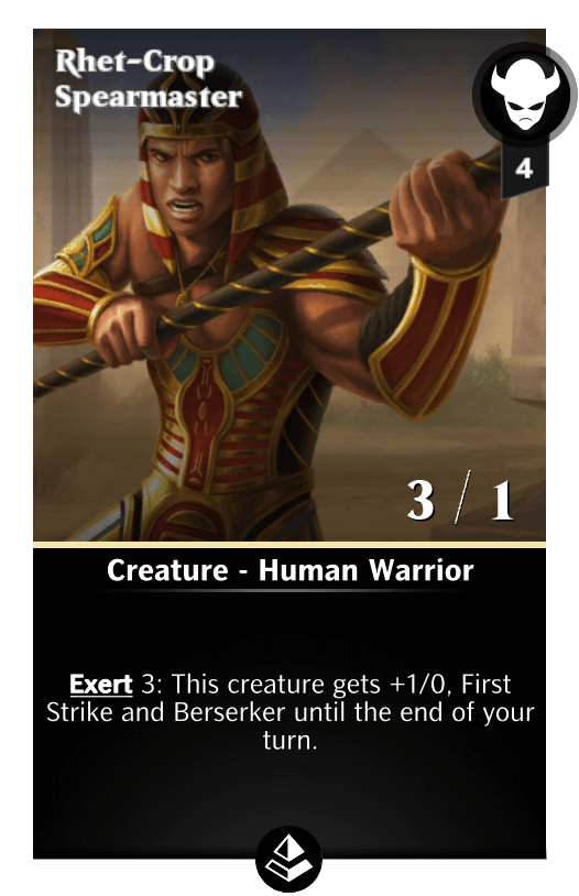 Exert 3: This creature gets +1/0, First Strike and Berserker until the end of your turn.