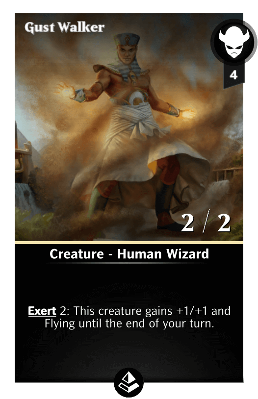 Exert 2: This creature gains +1/+1 and Flying until the end of your turn.