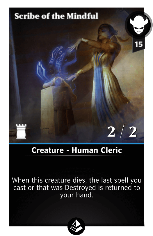 When this creature dies, the last spell you cast or that was Destroyed is returned to your hand.