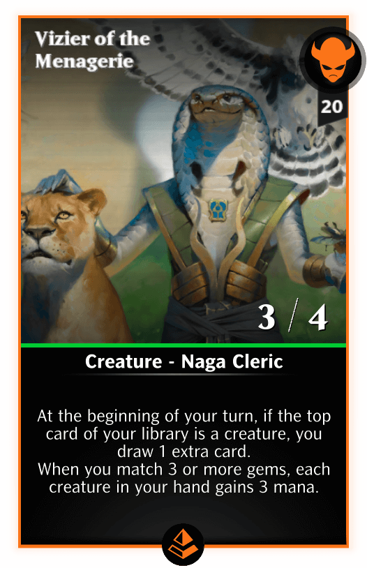 When you match 3 or more gems, each creature in your hand gains 3 mana.