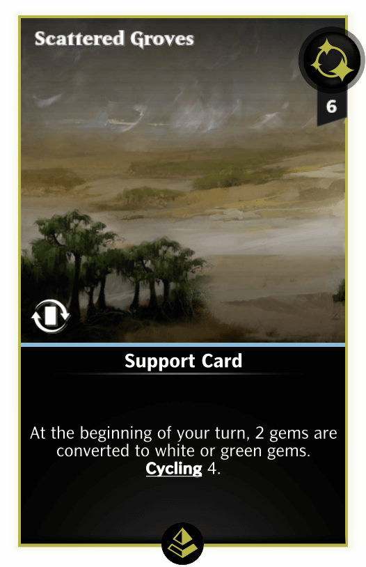 At the beginning of your turn, 2 gems are converted to white or green gems.