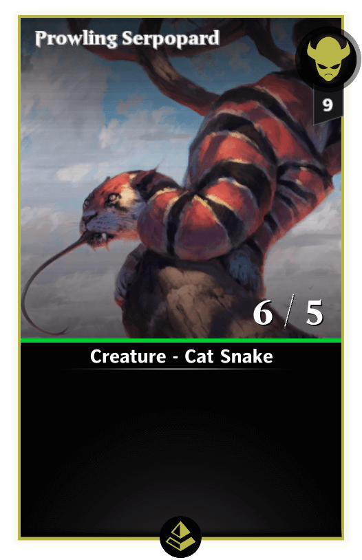 When this creature deals combat damage to a Planeswalker, the first creature your opponent controls gets -1/-1 and you summon 1 1/1 Snake token with Deathtouch.