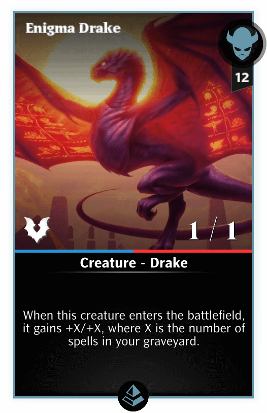 When this creature enters the battlefield, it gains +X/+X, where X is the number of spells in your graveyard.