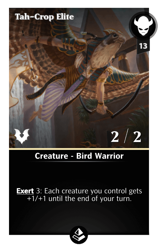 Exert 2: This creature gets +1/+2 until the end of your turn.