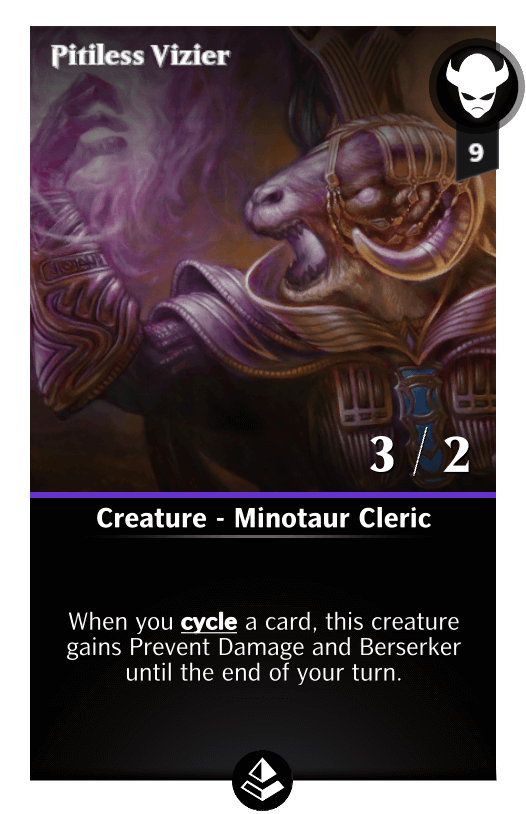When you cycle a card, this creature gains Prevent Damage and Berserker until the end of your turn.