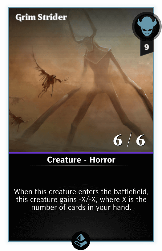 When this creature enters the battlefield, this creature gains -X/-X, where X is the number of cards in your hand.