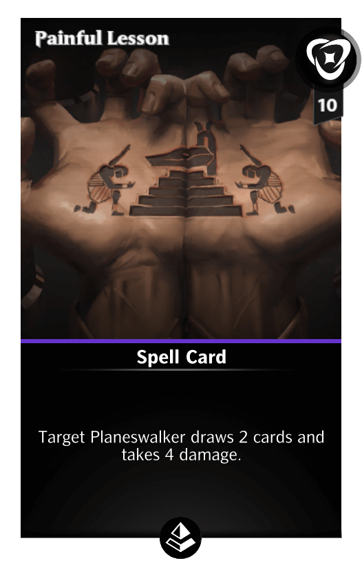 Target Planeswalker draws 2 cards and takes 4 damage.