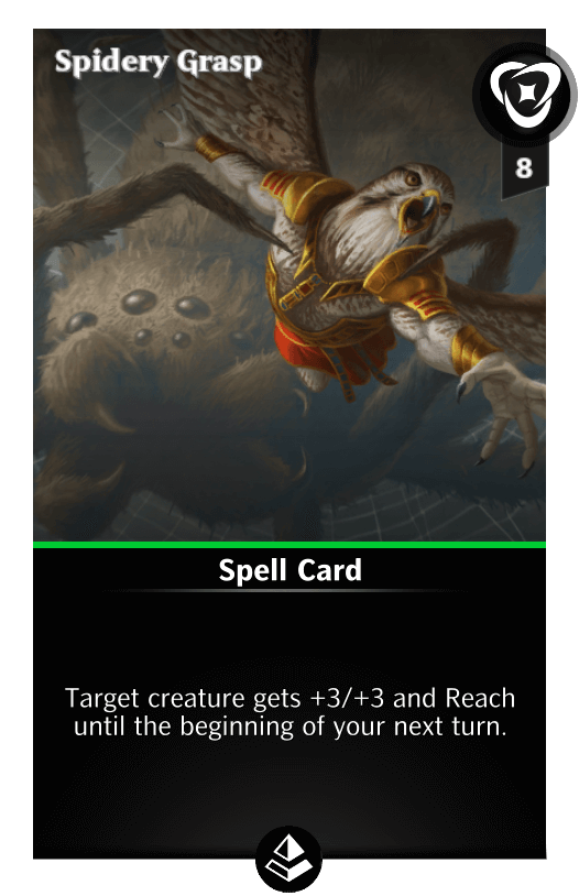 Target creature gets +3/+3 and Reach until the beginning of your next turn.