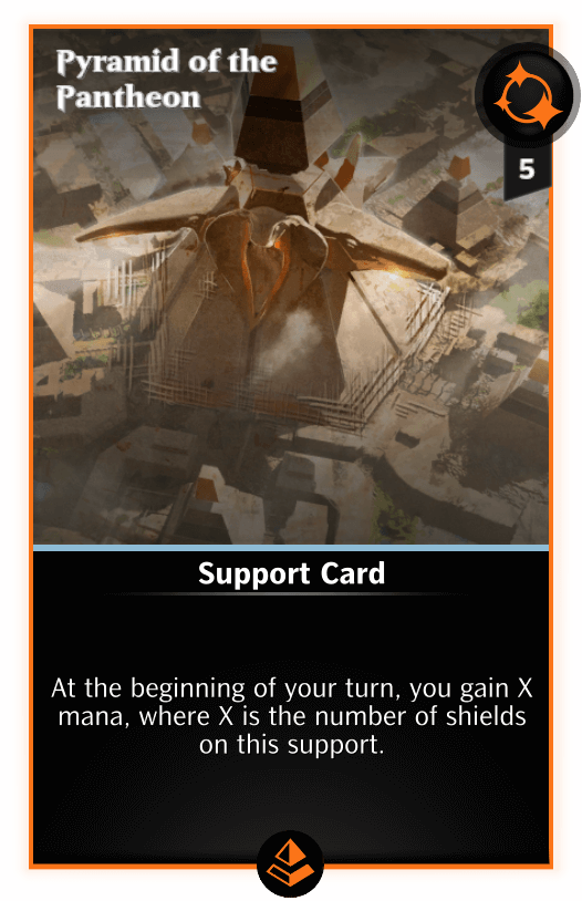 At the beginning of your turn, you gain X mana, where X is the number of shields on this support.