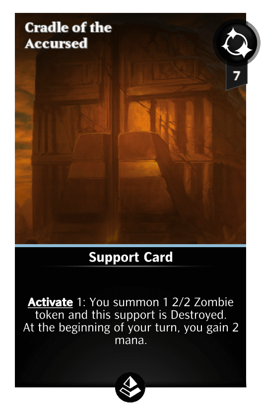 Activate 1: You summon 1 2/2 Zombie token and this support is Destroyed.