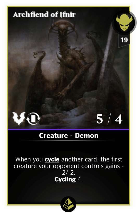 When you cycle a card, the first creature your opponent controls gets -1/-1.