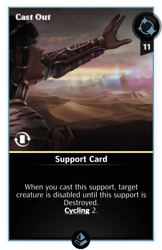 When you cast this support, target creature is disabled until this support is Destroyed.