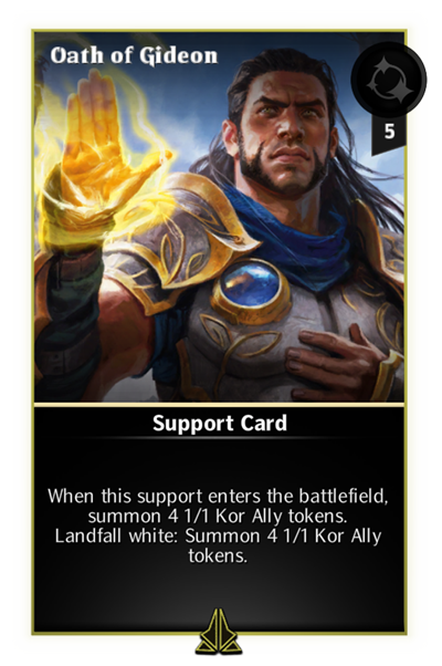 When this support enters the battlefield, summon 4 1/1 Kor Ally tokens.