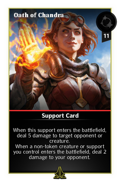When a non-token creature or support you control enters the battlefield, deal 2 damage to your opponent.