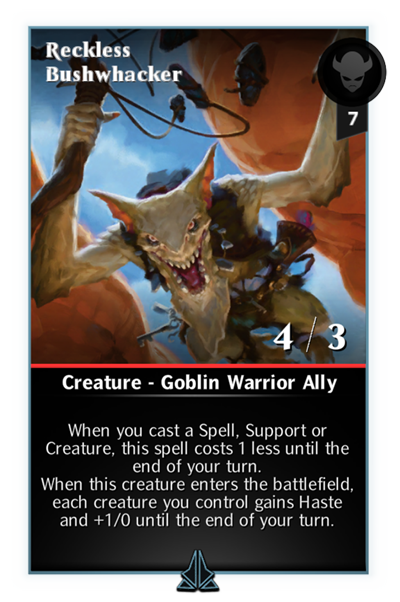 When you cast a Spell, Support or Creature, this creature costs 1 less until the end of your turn.