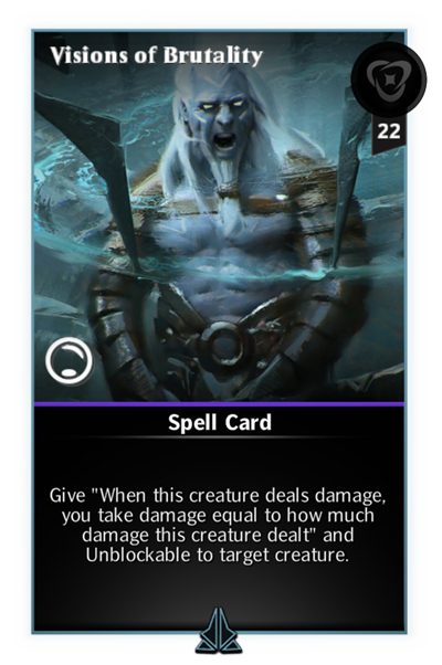 Give ‘When this creature deals damage, you take damage equal to how much damage this creature dealt’ and Unblockable to target creature.