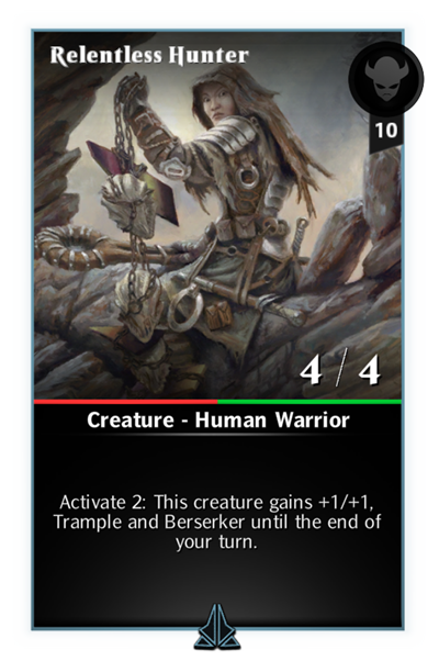 Activate 2: This creature gains +1/+1, Trample and Berserker until the end of your turn.