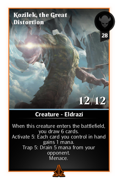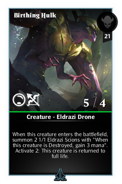 When this creature enters the battlefield, summon 2 1/1 Eldrazi Scions with ‘When this creature is Destroyed, gain 3 mana’.