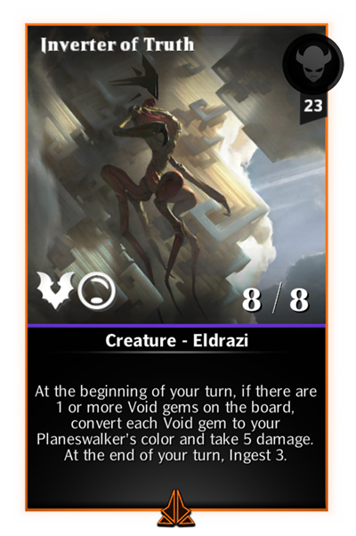 At the beginning of your turn, if there are 1 or more Void gems on the board, convert each Void gem to your Planeswalker’s color and take 5 damage.
