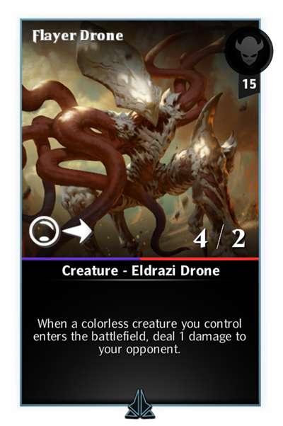 When a colorless creature you control enters the battlefield, deal 1 damage to your opponent.