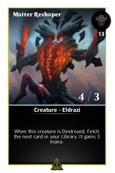 When this creature is Destroyed, Fetch the next card in your Library. It gains 3 mana.